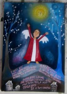 Velikost 30 krát 20 cm. Obrázek "na míru" pro paní Marii od její dcery. Popsala ji co nejvíce a Skácelova báseň mi to pomohla namalovat...